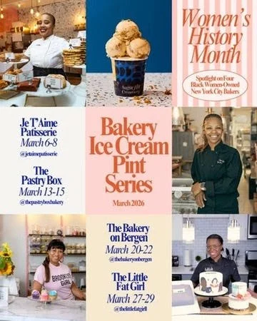 We just announced our Women’s History Month Bakery Ice Cream Pint Series and I’m really excited about that–we’ve partnered with four Black Women-owned NYC Bakers (Je T’aime Patisserie, The Pastry Box, The Bakery on Bergen, and The Little Fat Girl) to release a collaborative pint that features one of their most popular baked goods layered inside an ice cream pint that includes a custom ice cream flavor….I’m talking toasted almond croissants and salted chocolate chip cookies with ruby chocolate and Saint Domingue 70% dark chocolate. A limited edition of pints drops at all Sugar Hill Creamery locations as well as the featured bakery on each Friday of this month until they sell out.